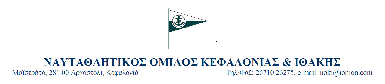 Ο Ναυταθλητικός Όμιλος Κεφαλονιάς και Ιθάκης (ΝΟΚΙ) έχει την τιμή και
